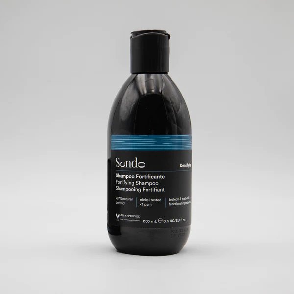 Champú fortalecedor. Limpia suavemente el cabello y el cuero cabelludo, preparándolos para el próximo tratamiento.