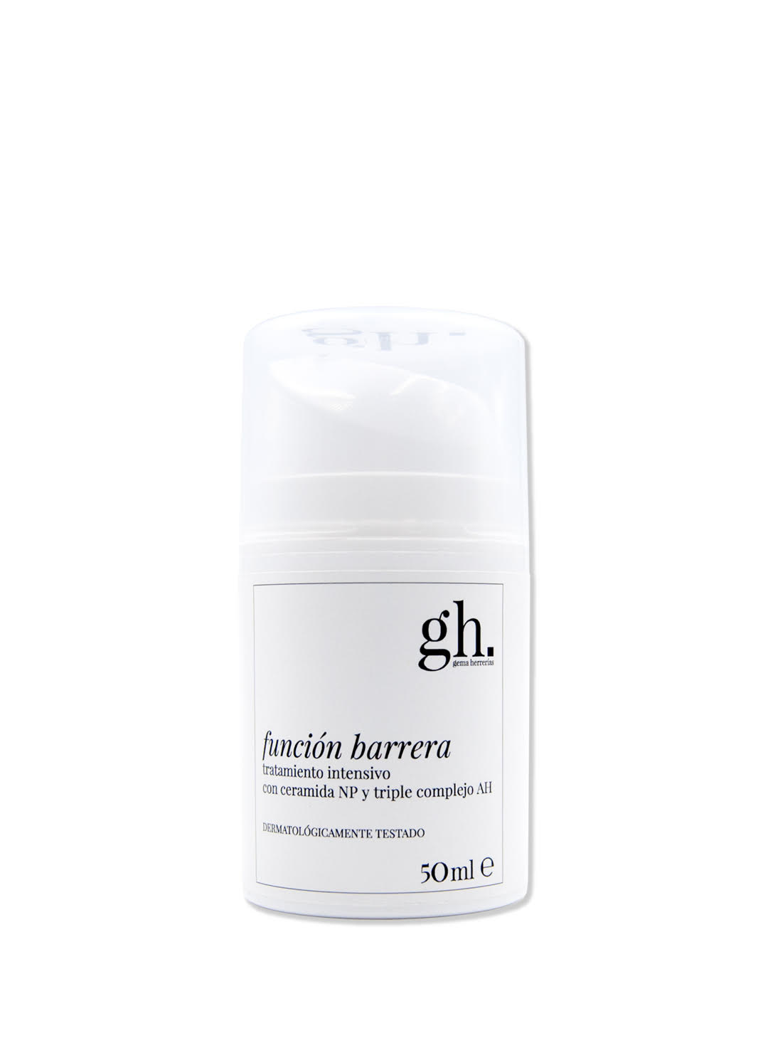 El GH Función Barrera Cremagel es un tratamiento intensivo diario, formulado en una textura cremagel ligera, adecuado para todo tipo de piel. Contiene un complejo de tres tipos de ácido hialurónico (AH): AH de alto peso molecular, que proporciona propiedades hidratantes; AH hidrolizado, que tiene efectos reafirmantes; y AH acetilado, que ofrece propiedades antiarrugas, antioxidantes, antipolución y reductoras de la rugosidad de la piel. Además, incluye dos ingredientes esenciales que mejoran la función barrera de la piel y favorecen la hidratación, elasticidad y sensibilidad cutánea: ceramida NP y un complejo lipídico omega 3, 6 y 9 de origen botánico. Su fórmula está enriquecida con manteca de karité (Butyrospermum parkii butter) y aceite de jojoba (Simmondsia chinensis seed oil).