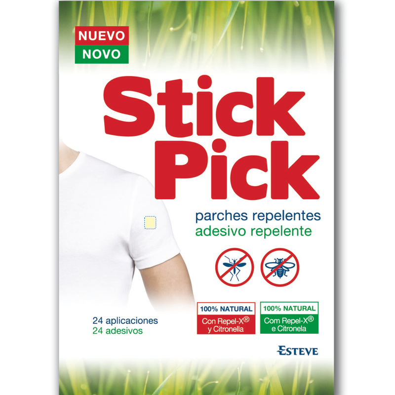 Los Parches Repelente de Insectos Stick Pick están diseñados con una lámina adhesiva impregnada en el exterior con microcápsulas de aceite esencial de citronela, conocido por su eficacia en ahuyentar mosquitos e insectos en general, y Repel-X, una mezcla de plantas naturales que incluye tabaco bosquimano, cuya fragancia es extremadamente desagradable para los insectos.